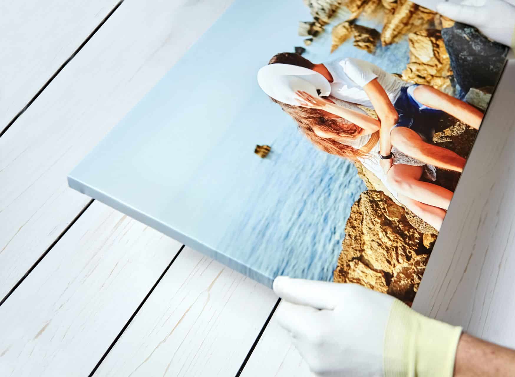 For example, if your stretcher bars are 20″ x 24″, you’ll want to cut your canvas more like 26″ x 30″ before attaching it. Having that extra material to work with is key for stretching canvas prints evenly across the frame.